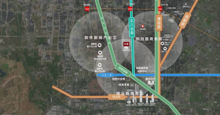 辐射唐延路商圈、科技路商圈、锦业路商圈,高新万达、中大国际、高新大都荟、T11商业街区、方圆荟、益田假日天地、大茂城等尽聚于此