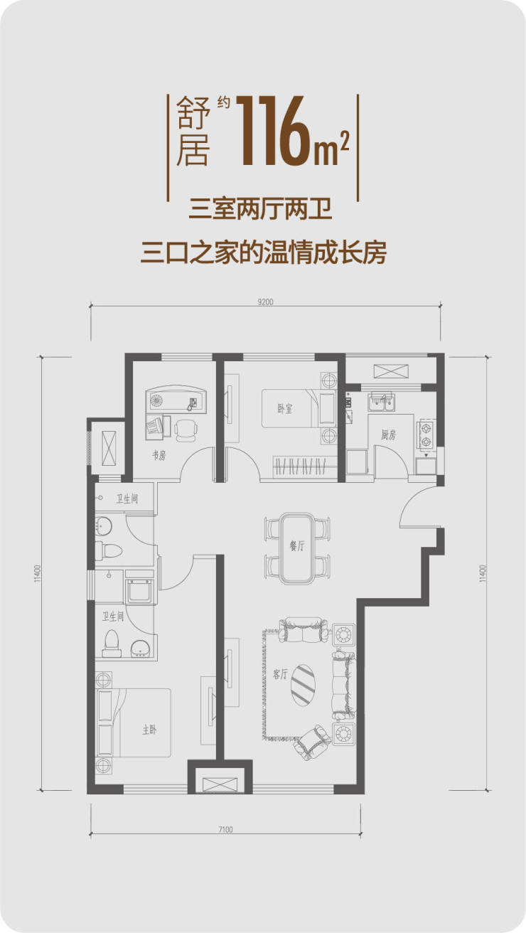 理想主义绿城,秉承“真诚、善意、精致、完美”的核心价值观,回应城市奋进者需求,于国宾道之上,为逐梦青年量身定制建筑面积约85-116㎡二室、三室产品,填补市场空白,让理想圆满在当下。