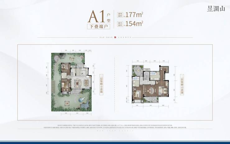 下叠端户(套内面积约154㎡,建面177㎡) 5房设计、10.8米超大面宽、3个花园70-200㎡