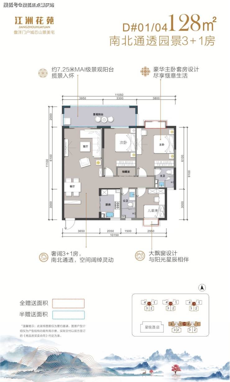 🚪产品类型:105-128㎡南北通透三房-四房