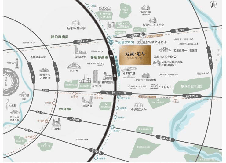 – **教育资源丰富**:区域内有12大学校,涵盖从幼儿园到中学以及高校的全龄段教育资源,像嘉祥外国语学校、成都七中英才、成都英华、二仙桥学校、万汇学校、理工大学、理工大附属中学、华西中学、四十九中、十二幼儿园、十三幼儿园、双林小学等。