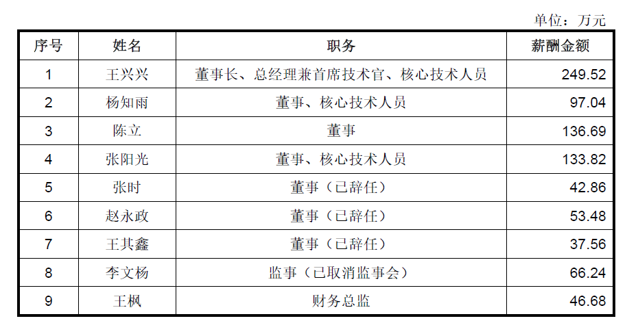 同时,招股书申报稿显示,2024年,与宇树签订劳动合同的董事、监事(取消监事会前)、高级管理人员及核心技术人员,从公司领取的薪酬金额合计为863.89万元。