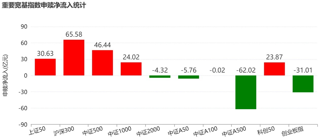 细分来看,主要宽基指数整体资金申赎统计显示,本周沪深300净流入65.58亿元,中证A500净流出62.02亿元。