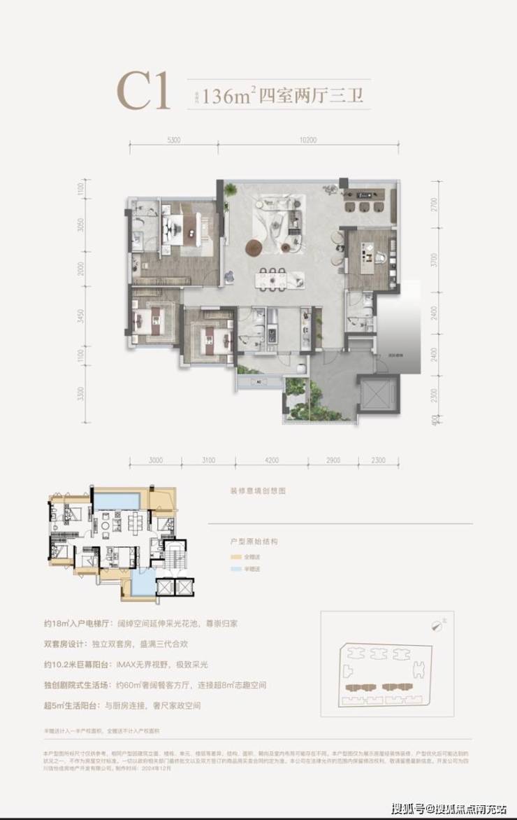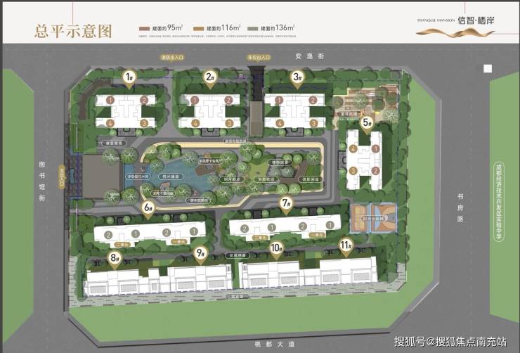 面积分布:95㎡套三、116㎡套四、136㎡套四