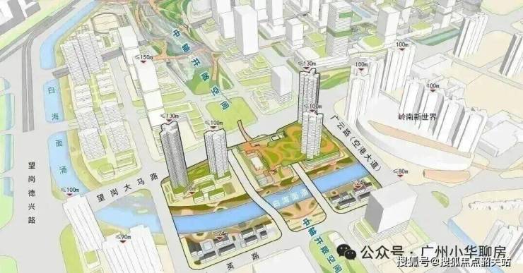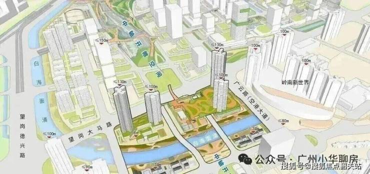 将采用“水岸共生”理念,以白海面涌为生态主轴,构建滨水慢行廊道。同时沿嘉禾望岗上盖设施打造景观化中轴公园,塑造片区创意活力。(非项目配建,以政府官方公示为准)
