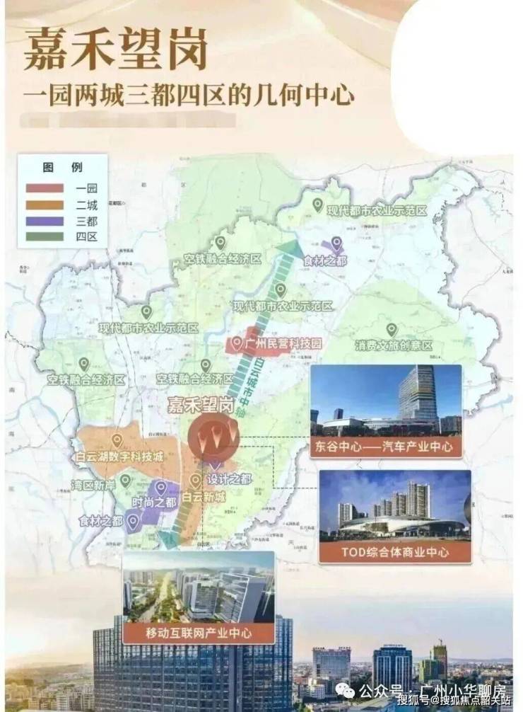 据2022年官方规划,嘉禾望岗定位为“白云新城嘉禾望岗商务核心区,产城融合的TOD综合开发示范区”。重点引入数字科技、智慧电商、智慧能源、智慧医药等产业,连结“广州设计之都·嘉禾望岗TOD白云智慧城”等高精尖产业发展势能,形成白云产业分布中心。这意味着,嘉禾望岗将不仅是TOD,同时赋予了产业中心的功能。