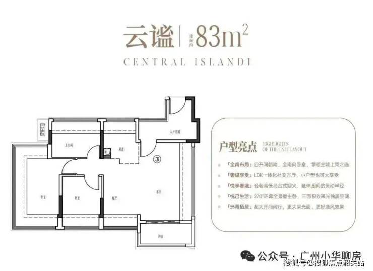 5,户型设计为新规户型,赠送率较高,参考越秀云悦的户型,88㎡户型能做到四空间配置,四开间朝南,主卧和一间次卧都有270°的大面转角飘窗;105㎡户型全屋4-4.5面宽朝南,客餐厨空间做到南北对流,而且餐厅一侧也带有大面宽的飘窗。