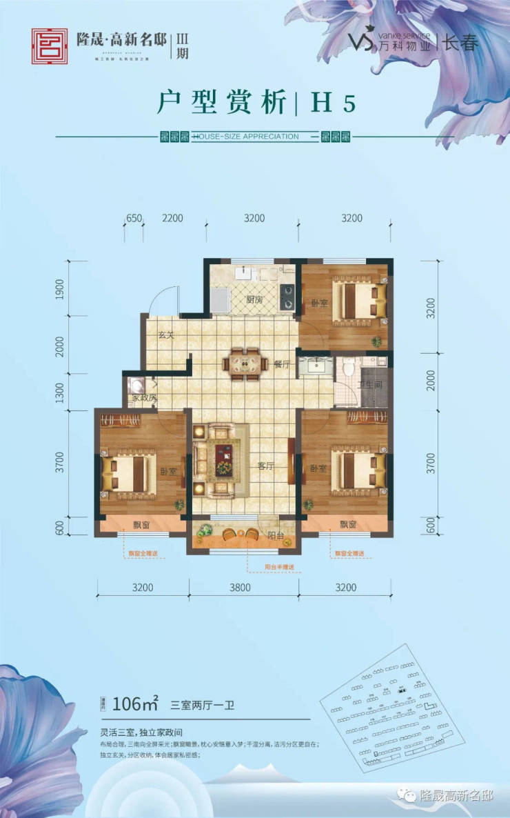 3.户户有赠送,赠送南向飘窗+半赠送全明落地大阳台,117㎡/130㎡洋房赠送电梯前室,一楼赠送花园,顶层赠送客厅5.7米挑空;