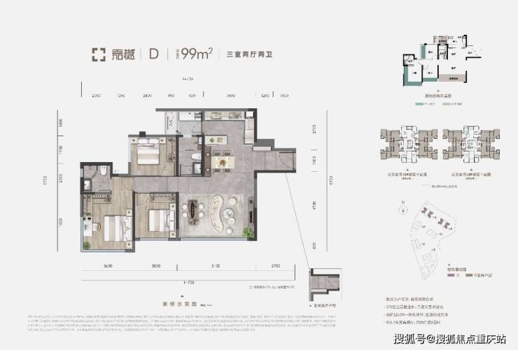 建面: 88/99㎡精装三房